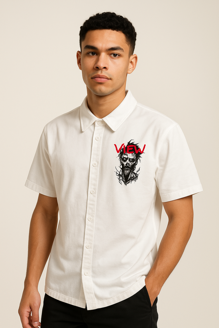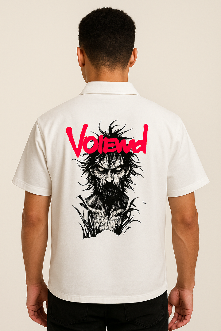 Step into the chaos with the Vagabond Reign – Dual Face Edition shirt by Nurox Studio. This white button-up features striking front and back illustrations of a fierce, war-torn figure inspired by the spirit of rebellion and raw determination. The bold red graffiti-style typography commands attention, while the black ink-style art channels the gritty energy of underground manga and street art. Whether worn buttoned up or layered open, this piece merges street culture with graphic storytelling.